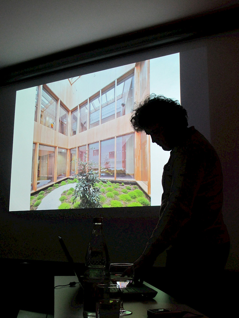 Das französische Büro nunc architectes experimentiert schon seit über zehn Jahren mit technischen und energetischen Aspekten des Bauens. Da der Vortrag von Louis Piccon im Rahmen der trinationalen Architekturtage mit dem diesjährigen Schwerpunktthema „Lumière/Licht“ stattfand, ging der Mitgründer und Teilhaber von nunc architectes im Architekturforum besonders auf diesen Aspekt ein. Er stellte Projekte vor, in die solare Pufferräume eingebaut sind, die das ganze Gebäude thermisch versorgen: entweder als Doppel-Fassade, als Atrium im Zentrum der Gebäude oder als eine Art vorgelagerter Wintergarten.