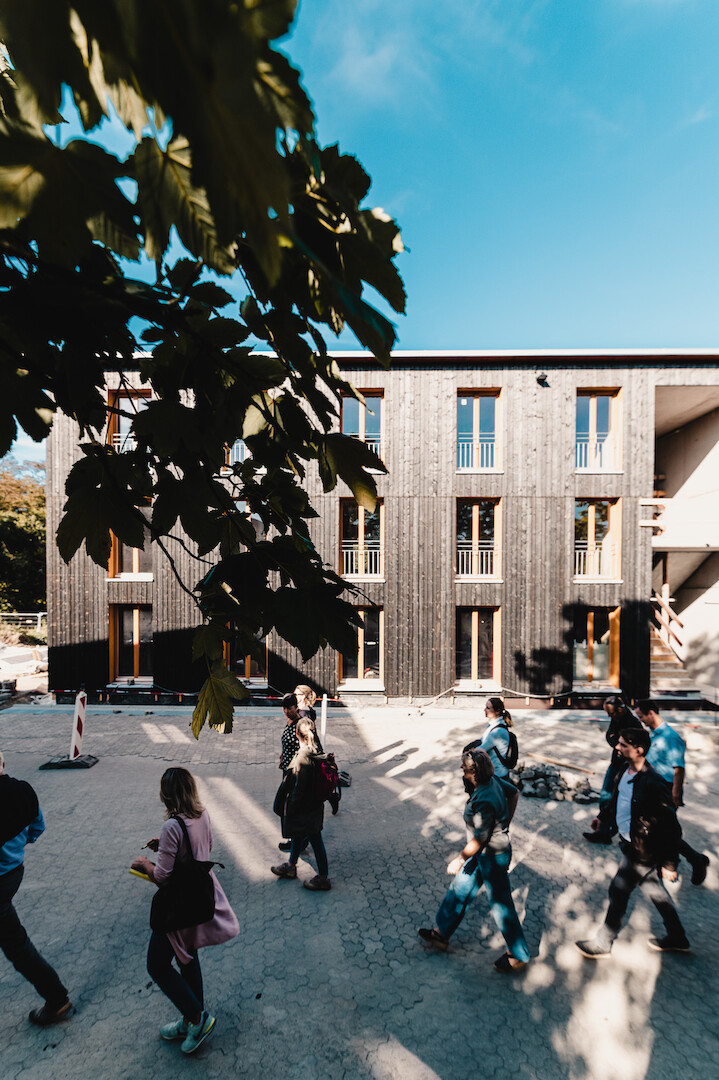 Was haben ursprünglich für eine Flüchtlingsunterkunft hergestellte Holzmodule mit dem Neubau für wohnungslose Menschen gemeinsam?