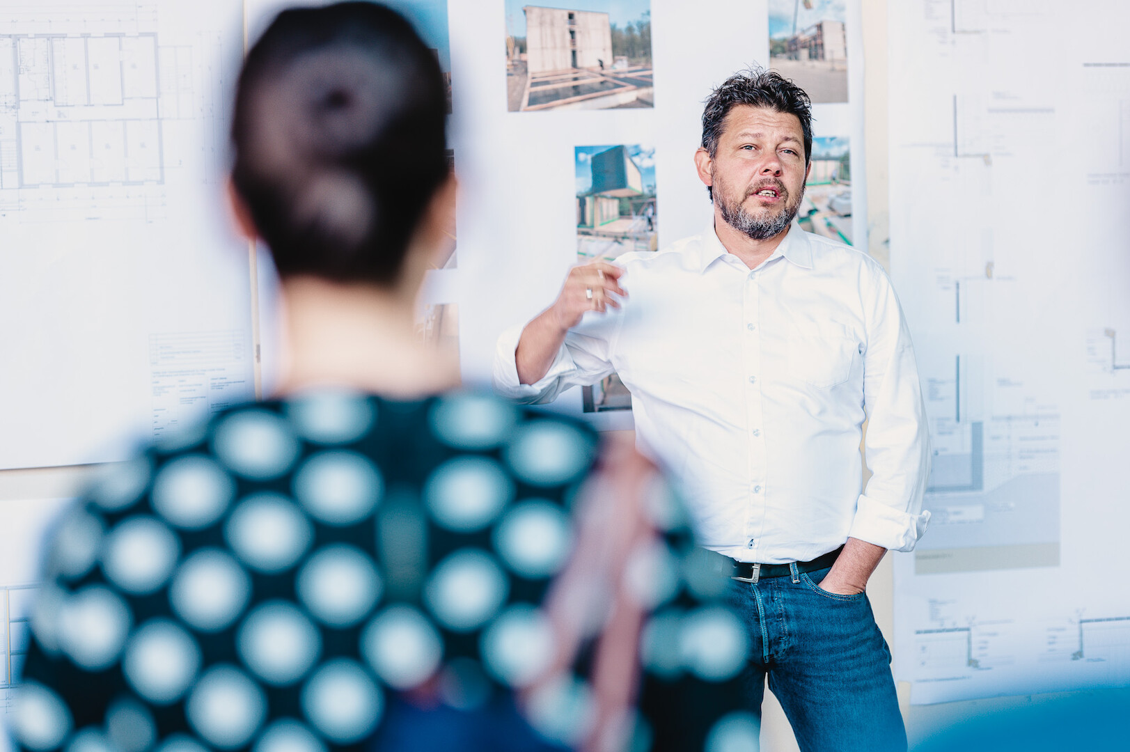 das sind die Architekten Silke Stocker-Dewes und Wolfgang Dewes. Mit Ihrem Projekt der Umnutzung eines Stalls in ein Passivhaus zum Wohnen und Arbeiten wurden Sie bekannt. 2017 erhielten sie vom Bund Deutscher Architekten BDA Baden-Württemberg den Hugo Häring Preis für die Asylbewerberwohnheime in modularer Holzbauweise an drei Standorten in Freiburg, die in Arbeitsgemeinschaft mit den Büro Franz und Geyer Architekten und Weissenrieder Architekten ausgeführt wurden.