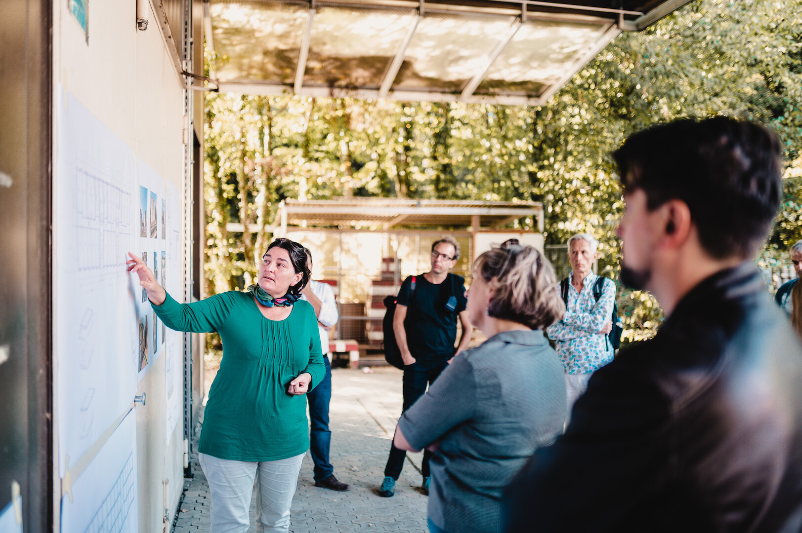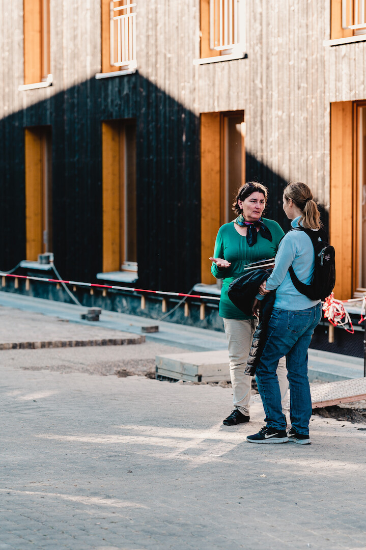 „Wohnungslosigkeit ist in der Mitte der Gesellschaft angekommen“ berichtete Doris Danzeisen vom Gebäudemanagement der Stadt Freiburg bei der Führung vor Ort. Steigender Bedarf gerade bei Familien mit Kindern machte den Neubau notwendig. Kostengünstig und flexibel in der Grundrissplanung sollte das neue Gebäude sein sowie für die aus ihrem gewohnten Umfeld herausgerissenen Menschen eine freundliche Wohnatmosphäre bieten.