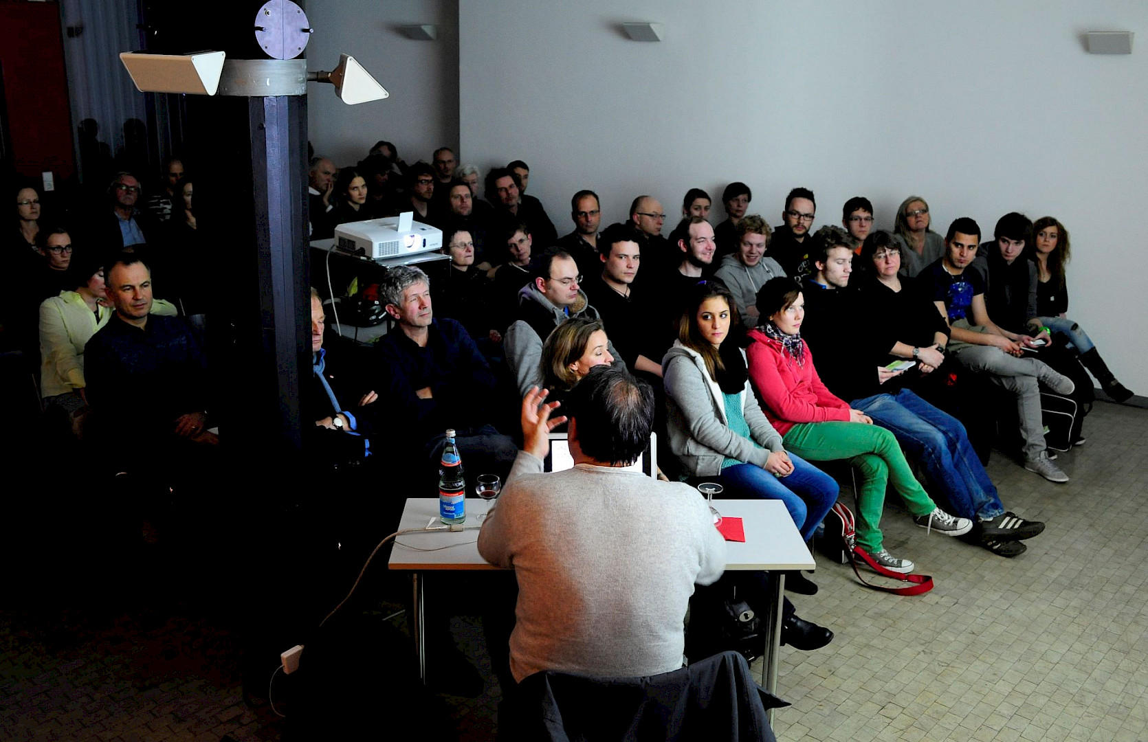 Ruedi Baur interessieren die kaputten Orte. Am spannendsten findet er Stadträume, die niemand gerne aufsucht, uncharmante oder vernachlässigte Plätze. Solchen Unorten mit Schrift eine Poesie zu verleihen, ist sein Anliegen. Er traut der Typopgrafie zu, dass sie einen Ort oder einen Raum so verändern kann, dass er anders als vorher wahrgenommen wird. Als Schriftgestalter weiß Ruedi Baur, wovon er redet – und anhand seiner Arbeiten zeigte er an diesem Abend im Architekturforum rund 100 Gästen, dass ihm das gelingt. Denn er kennt die Macht der Zeichen.