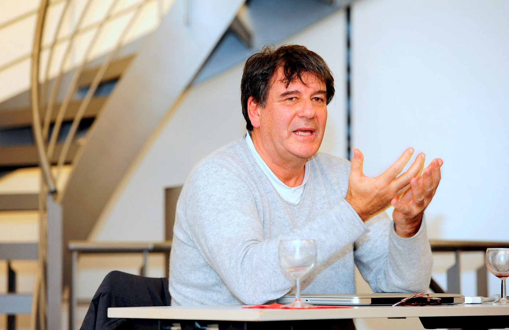 Dabei inspiriert ihn die Auseinandersetzung mit dem Ort, zu dem eine bestimmte Form nur so und nicht anders und nur „Hier, und nirgendwo anders“ passt. „,Hier und nirgendwo anders‘ oder die Macht der Form des Geschriebenen“ lautet auch der Titel seines Vortrags.