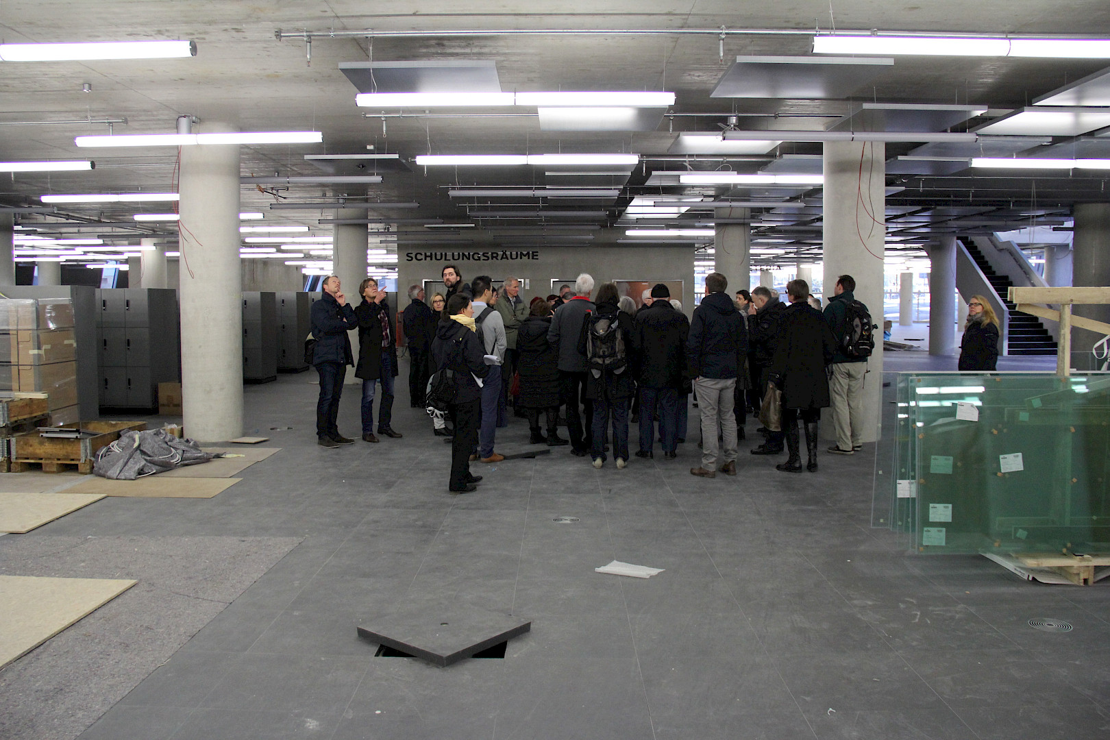 Das Architekturforum Freiburg hat sich vom Basler Architekten Heinrich Degelo durch die fast fertige Universitätsbibliothek führen lassen.