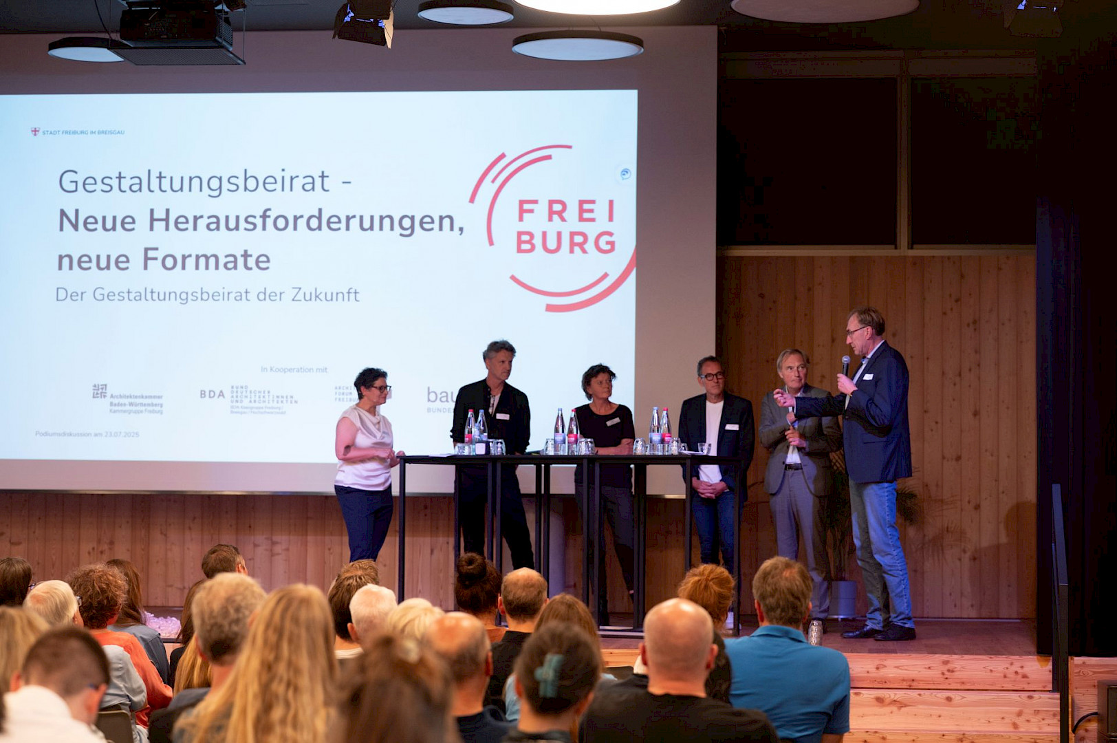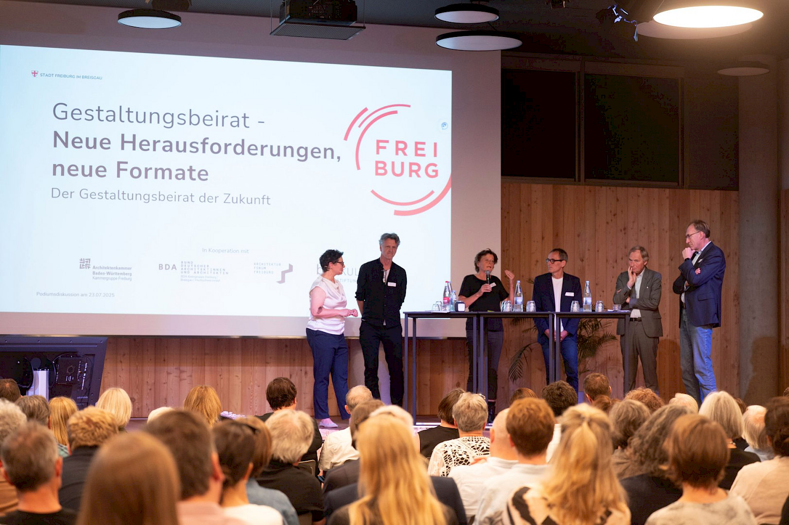 Seit zehn Jahren gibt es den Gestaltungsbeirat in Freiburg. Das weisungsunabhänige Gremium ist beauftragt, die Qualität von Bauvorhaben und Freiräumen zu sichern und somit die Lebensqualität für alle zu stärken. Dafür werden städtebauliche, architektonische und landschaftsplanerische Qualitäten von geplanten Bauvorhaben begutachtet und ein ehrliches, konstruktives Feedback dazu abgegeben. Der Beirat versteht sich als Vermittler für Baukultur und macht sich für eine zielgerichtete und nachhaltige Stadtentwicklung stark.
