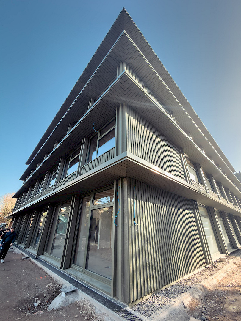 Gebäude- und Energiekonzept wurden integral unter Berücksichtigung einer guten Energieeffizienz, einer hohen Arbeitsplatzqualität und einem nachhaltigen Gesamtkonzept geplant. Eine Photovoltaik-Anlage auf dem Dach komplettiert den nachhaltigen Anspruch des Gebäudes.